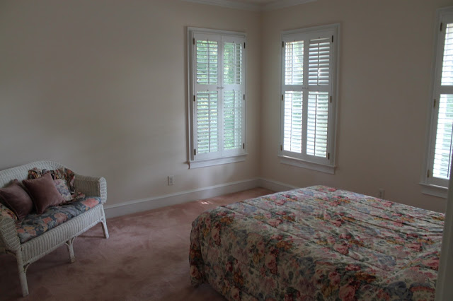 All the bedrooms upstairs, received new carpet and paint. Tessa's room received two coats of paint because, honestly, the first color I picked just wasn't right. Way too peachy. The second color, Patient White, by Sherwin Williams, is a really subtle pink. A good compromise for the girl that wanted a hot pink room. Before you go thinking I'm not indulging her creative side, I'll let you in on a little secret - there will be hot pink. Lots of hot pink. Be scared. I am.